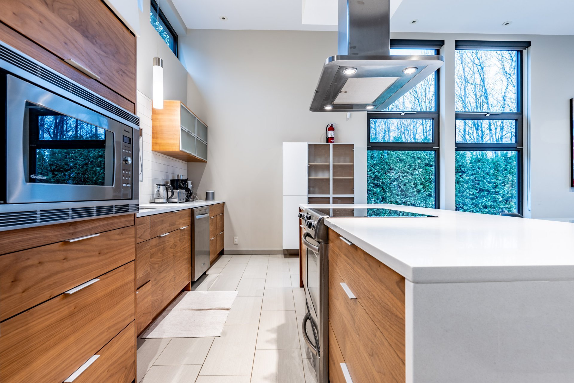 Les lignes sont franches, les volumes assumés et la structure apparente confère à l’ensemble une signature contemporaine forte, à la fois élégante et intemporelle. L’acier permet de grandes portées et de vastes ouvertures, laissant entrer la lumière naturelle en abondance et créant un dialogue constant entre l’intérieur et le paysage.